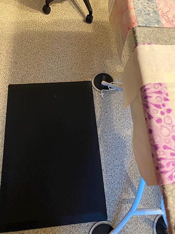 If you stand while you iron, it does get a bit tiring on the knee joints and soles of the feet, especially if you, like I, have a "no shoes in the house" policy. I recently moved my standing desk anti-fatigue mat over in front of the ironing board, and let me tell you, it makes a world of difference!