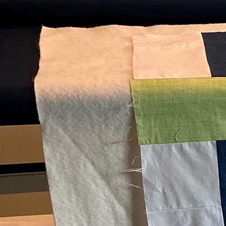 You will typically choose a coordinating fabric color for the back of your quilt. You'll need to sew together a few yards of fabric to make a piece large enough for the back. When piecing, you'll want to measure the quilt top and add 4" to all sides to allow extra fabric for the finishing process. I use microfiber sheets for my backing, negating the need to piece together yards of fabric.